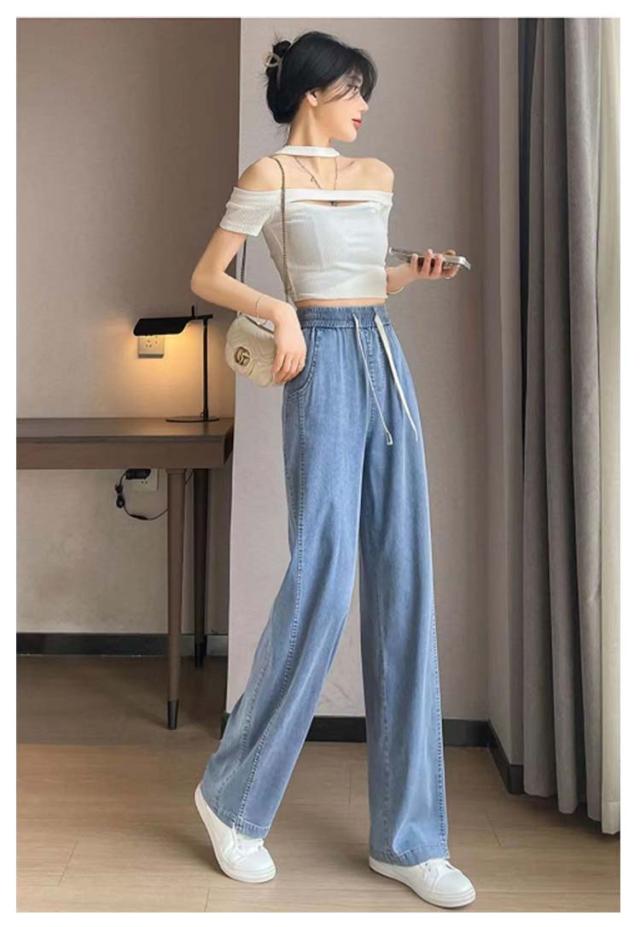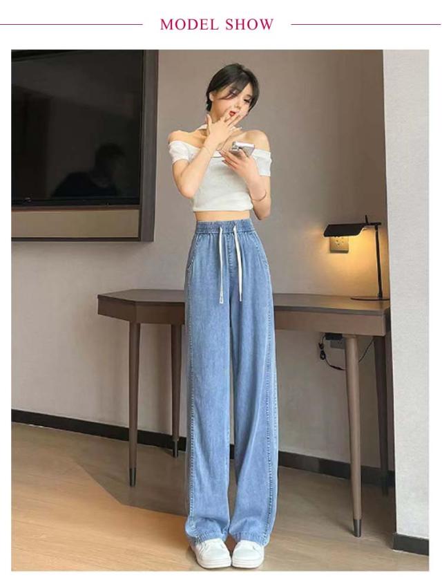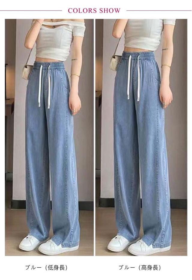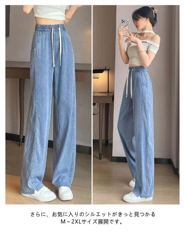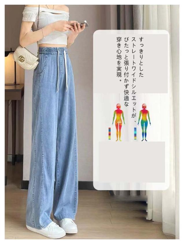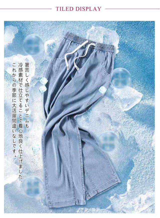 デニムパンツ 接触冷感 ストレート ワイドパンツ UVカット ゆるパンツ レディース デニム パンツ 春 夏 ひんやり 無地 薄手 涼しい ロング丈 ストレートパンツ ジーンズ ウエストゴム ガウチョ 体型カバー ボトムス ズボン ゆったり 着痩せ 美脚