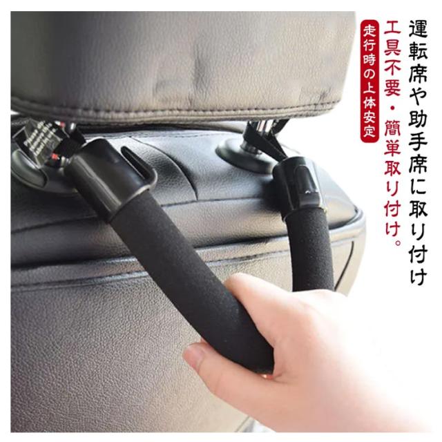| ●走行時の上体安定 ●運転席や助手席に取り付け ●工具不要・簡単取り付け。 フック付きなのでお買い物袋や傘等を掛けておく事も可能。 スポンジ加工で握りやすいため、走行中の上体安定が高まります。 取り外しができるので、状況に合わせて取り付けシートを変えることが可能です。 一般ユーザー・各福祉施設・タクシー会社など幅広いお客様にご使用いただけます。 | |