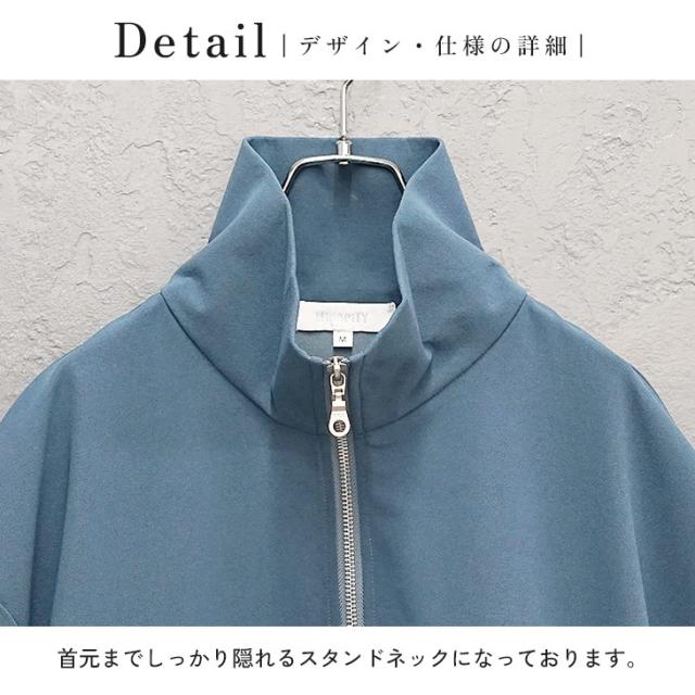 スタンドネックになるので、襟を立てて着用すればモードな印象に。
