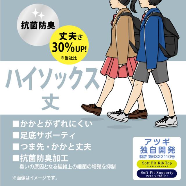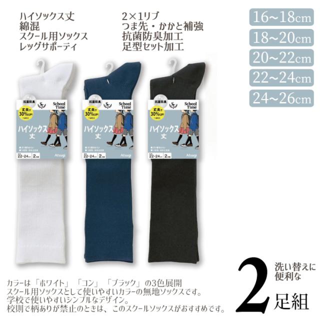 【2点以上お買い上げで送料無料】スクールソックス アツギ new スクールタイム ハイソックス丈 リブ CK78082 2足組 子供靴下 学生靴下 キッズ ジュニア 学校 無地 白 紺 黒 アツギ ソックス 女児 女の子 ひざ下 膝下 リブソックス リブ編み 抗菌防臭 atsugi(06129)