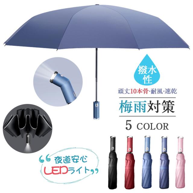 新登場 多機能デザイン LEDライト 男女兼用 折りたたみ 軽量 折りたたみ傘 季節限定アイテム 防犯 今だけ 大きい 夜道安心 ワンタッチ自動開閉 晴雨兼用 梅雨対策 深夜 傘 SNS話題 10本骨強風対応 送料無料 クリスマス 冬の新生活応援