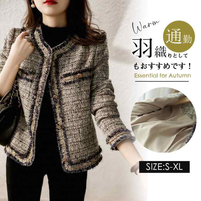 注目ランキング上位 話題商品 レビュー高評価 多機能デザイン レディース オフィス 通勤OL ツイードジャケット ツイードコート 大人韓国風 長袖ノーカラージャケット 春コートアウター 秋服 送料無料 冬用