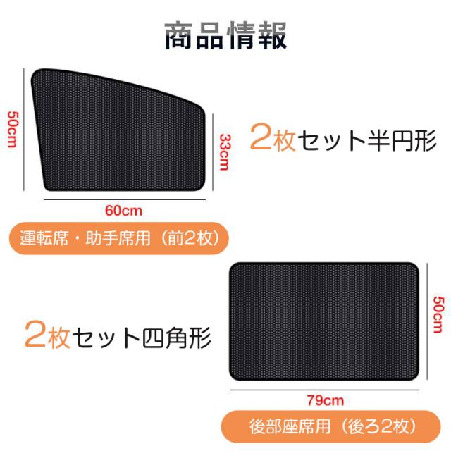 2タイプ:運転席・助手席用(前2枚)/後部座席用(後ろ2枚)