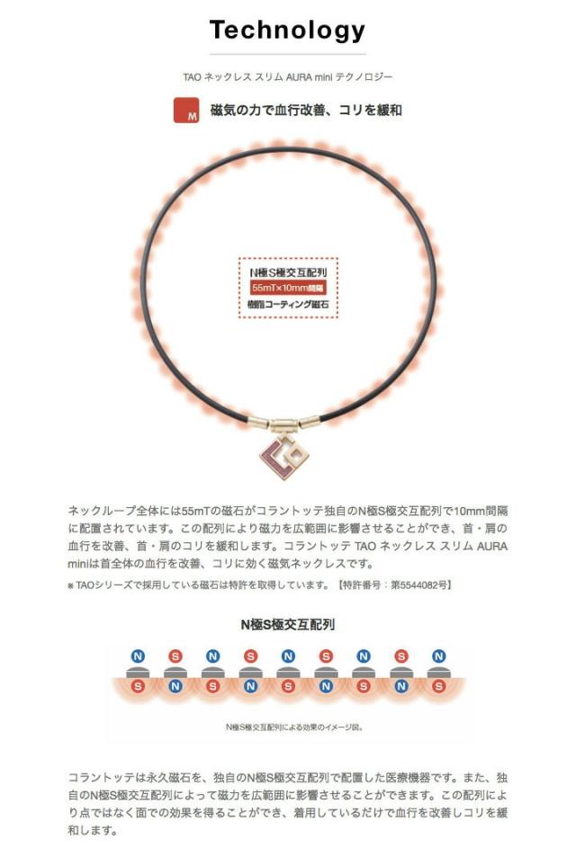 軽い着け心地でありながら、 既存の4mmTAO ネックレス同等の磁力 (55ミリテスラ)を実現しています。
