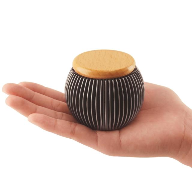 ?【かわいいミニ骨壷素材とサイズ】 ??本体材質:アルミ製+天然木ブナ材無垢、手触り感もよく、木の暖かさを感じさせます。??骨壺サイズ:外寸法:直径6.5cm×高さ5.5cm/内部収納有効寸法:直径約4.0cm×高さ約3.5cm ??1gのプラスチック計量スプーンと15~20g透明ボトル付き。両手でそっと温めるように持つことができる、丸みのあるフォルムミニ骨壷。スカイグレー、シルバー、シャンパン三つの色で、部屋の雰囲気に応じてお好みな色を選びましょう。