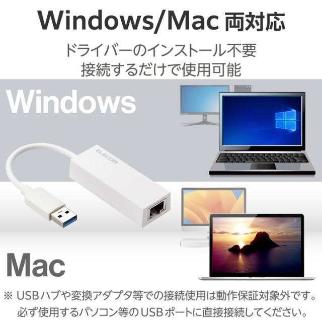 【在庫処分・お買い得!】 エレコム 有線LANアダプター Giga対応 USB 5 Gbps Type-A 有線 LANアダプター ホワイト┃EDC-GUA3V2-W