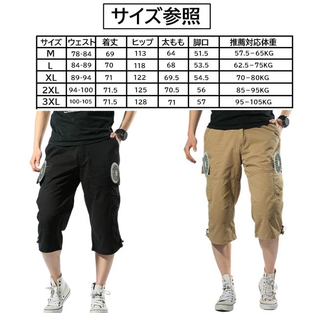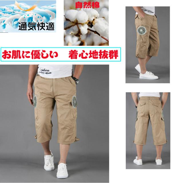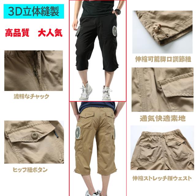カーゴパンツ メンズ 7分丈 空調パンツ ファン付きパンツ 夏 メンズショートパンツ 半ズボン ハーフパンツ 熱中症対策 冷感パンツ