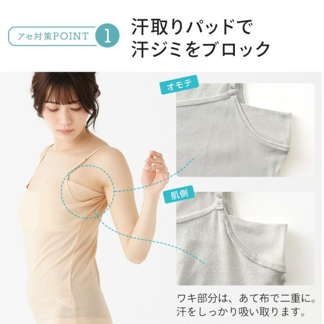 2枚set 送料無料 綿100% 汗取り 脇汗 インナー キャミソール レディース パッド付き 素肌ドライ 春夏 汗染み 防止 汗 対策 シャツ 綿 汗とり パット付き 吸汗速乾 M9480P-E