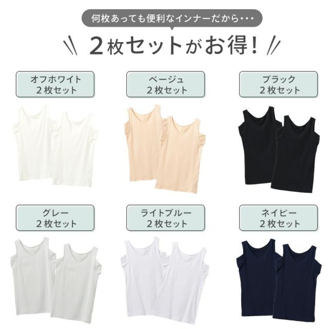 2枚set 汗ばむ季節を快適にする、綿100% 汗取りタンクトップ。