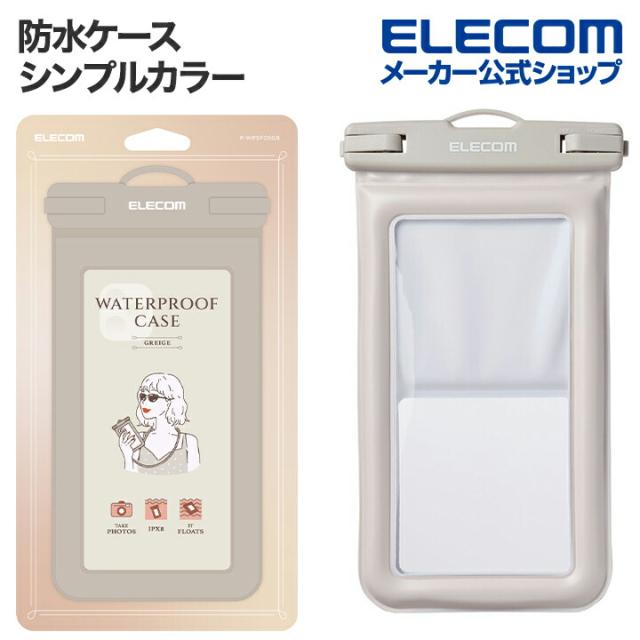 エレコム スマートフォン 用 防水ケース シンプルカラー フローテイング IPX8 ショルダーストラップ付属 グレージュ ┃P-WPSF05GB