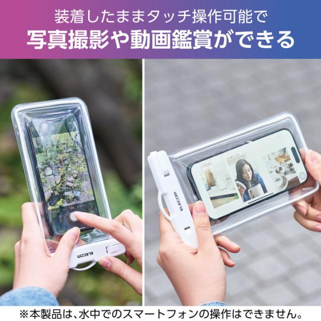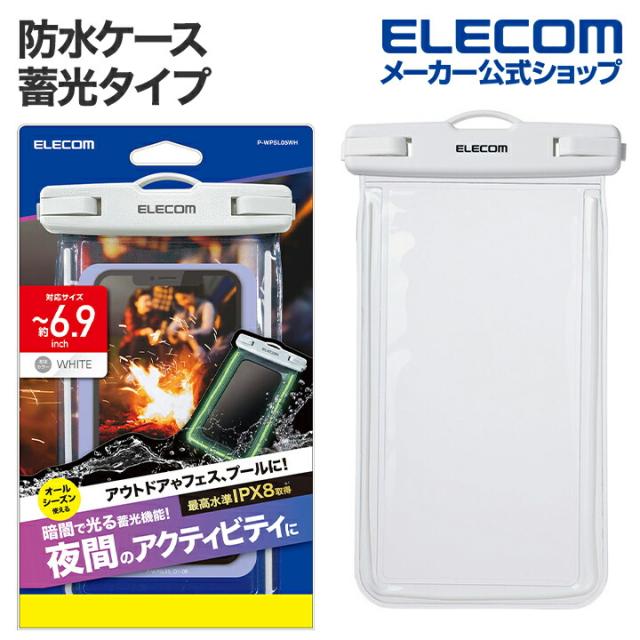 エレコム スマートフォン 用 防水ケース 蓄光タイプ IPX8 ショルダーストラップ付属 ホワイト ┃P-WPSL05WH