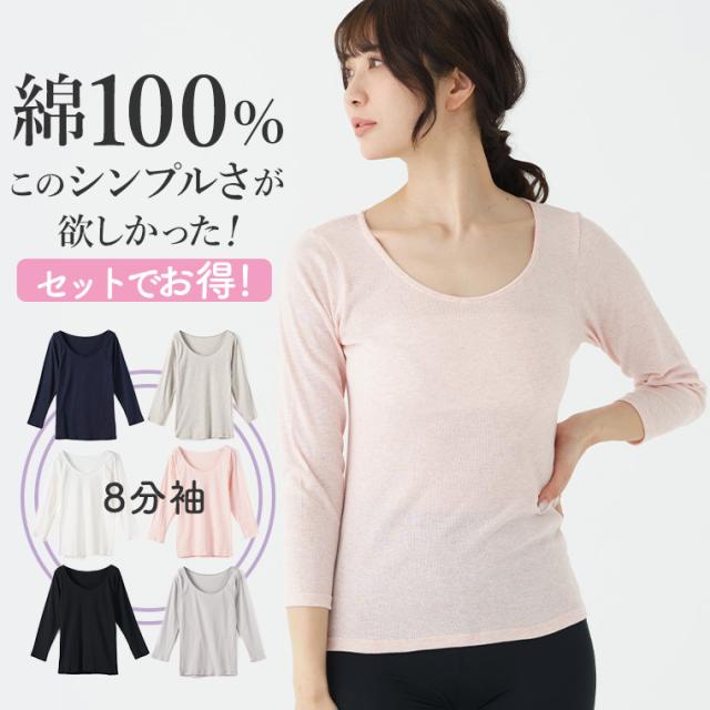 3枚set 綿 100% インナーシャツ 8分袖 レディース 年間 コットン 100 抗菌 防臭 シンプル ベーシック 8分袖 送料無料 T5033N-E