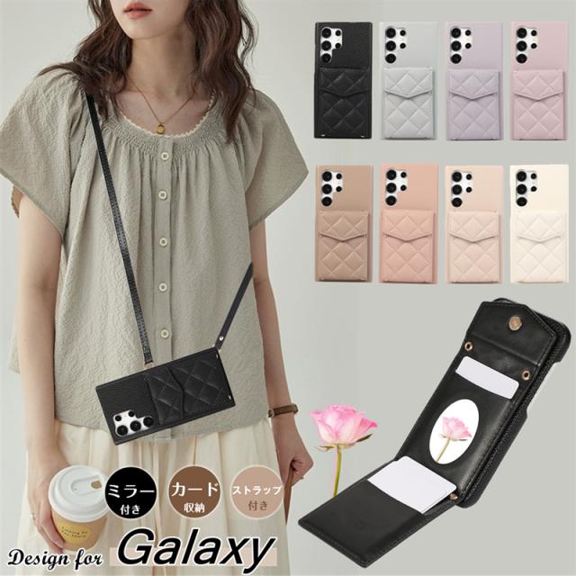 ミラー/カード/ショルダー ギャラクシー S25 Ultra スマホケース ショルダー タイプ Galaxy S24 5G 携帯ケース ショルダー カード収納 ギャラクシーA53 ギャラクシーA55 Galaxy A54 A53 S24 S22 S23 Ultra S23FE 5G カバー ケース キルティング 化粧 鏡付き 韓国 大人可愛い