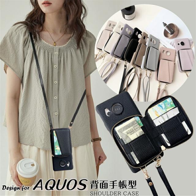 財布一体型 AQUOS sense8 sense10 ケース ファスナーポケット AQUOS sense7 ケース AQUOS sense6S ケース WISH4 WISH5 スマホケース 携帯ケース ショルダータイプ カード入れ アクオス R8 プロ ケース 革 アクオス センス8 sense 9 7 7Plus WISH3 6S R9 Pro R10 ケース