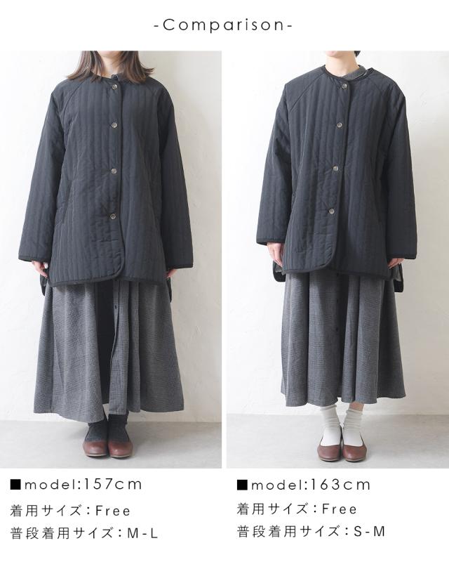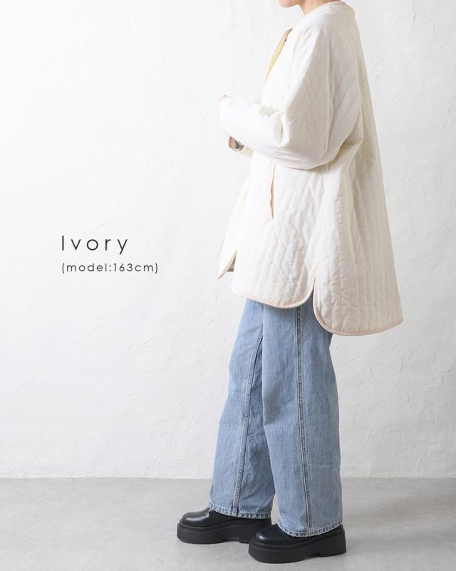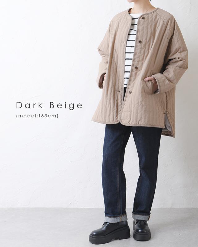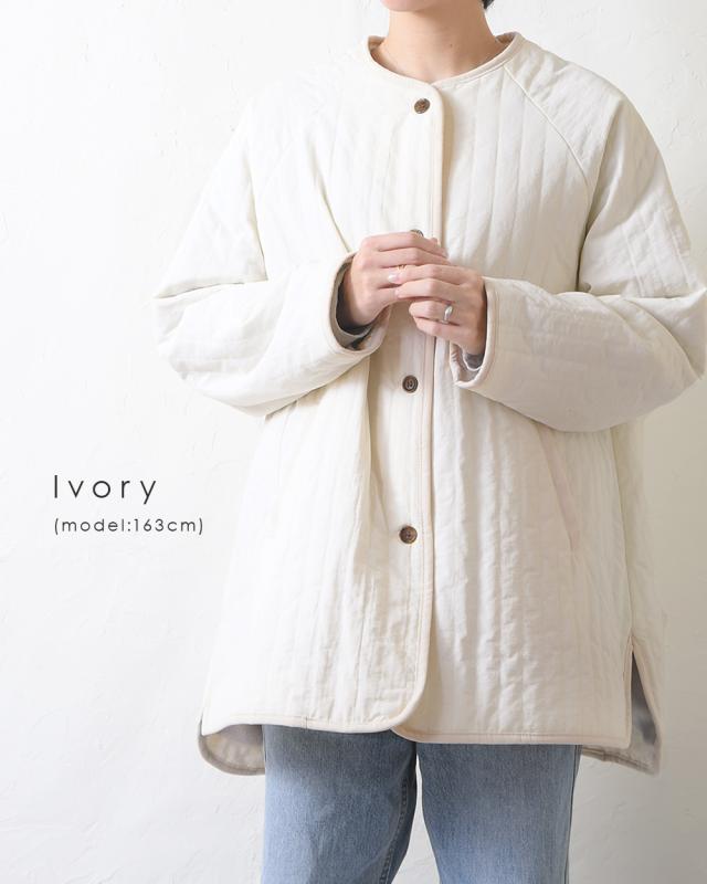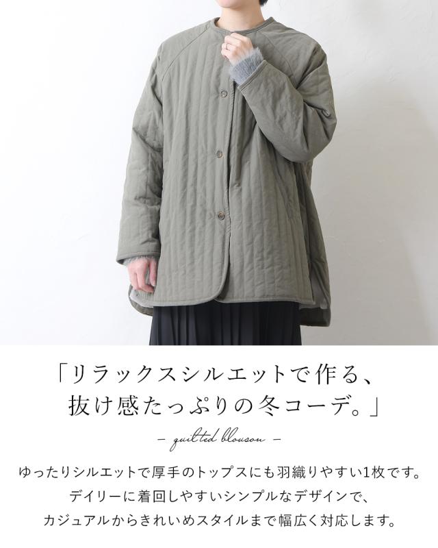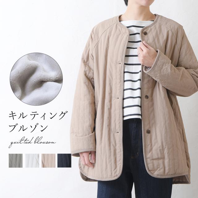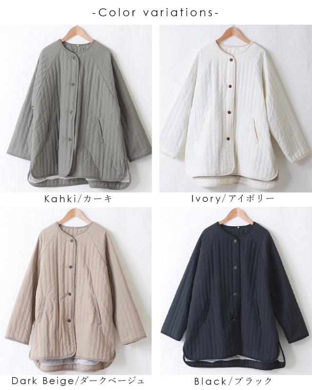 キルティングジャケット レディース キルティングブルゾン コート キルティング キルトコート アウター ミドル丈 ノーカラー ゆったり オーバーサイズ 暖かい 防寒 可愛い ポケット付き おしゃれ カジュアル ベージュ カーキ アイボリー 白 黒 秋 冬