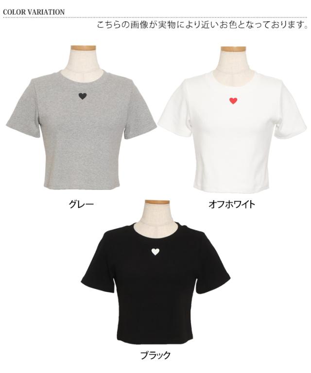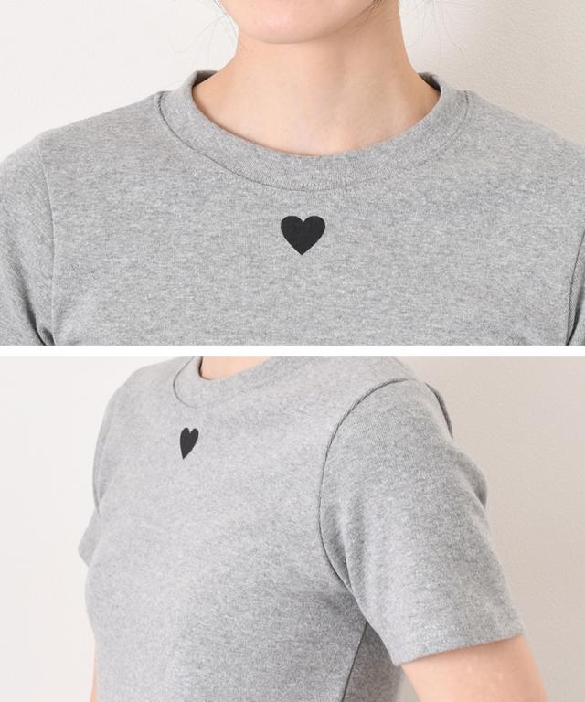 新作 ショート丈ハートプリントヘビーウェイトTシャツ レディース トップス カットソー 半袖 厚手 肉厚 透けない 透けにくい おしゃれ ティーシャツ もっちり 可愛い 韓国ファッション 丸首 コンパクト 無地 大人