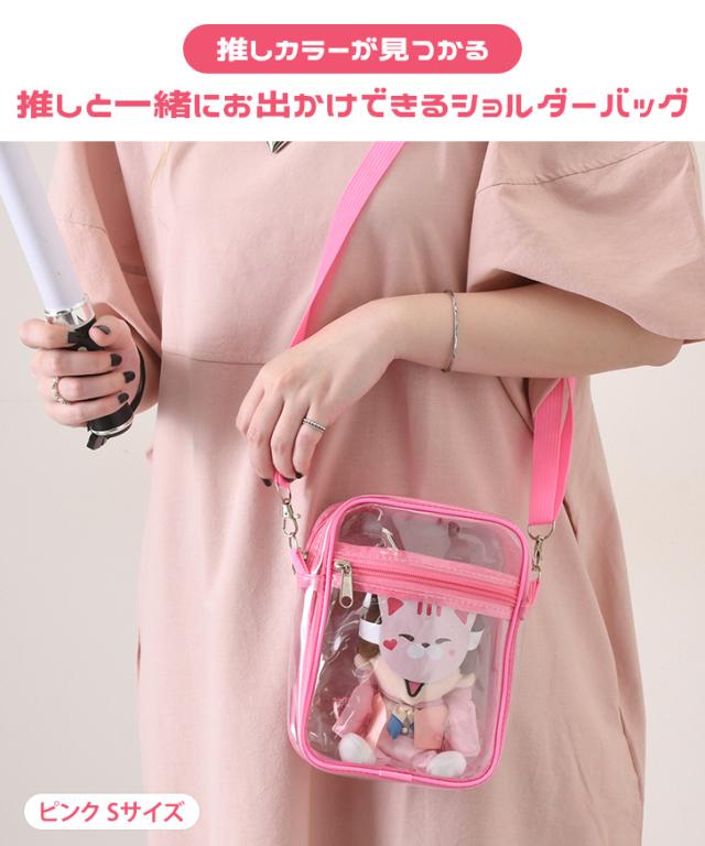 新作 選べる2サイズ×8カラー ポケット付き ショルダー クリアバッグ レディース ショルダーバッグ クリアショルダー ビニール 透明 推し活 オタ活 推しカラー 推し色 ライブ コンサート 斜めがけ ぬいバッグ