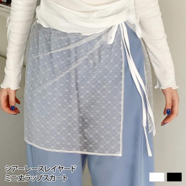 新作 シアーレースレイヤードミニ丈ラップスカート レディース スカート ボトムス 巻きスカート 巻き レイヤード 重ね着 巻くスカート ラップスカート 膝上 ひざ丈 チュール 透け シースルー 総レース ズボンの上