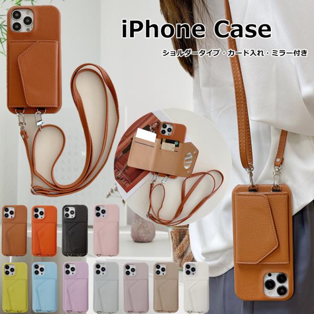 iPhone 15 ショルダータイプ 14 Pro Max Plus カード入れ iPhone11 ケース 13 12 mini 11 肩掛け 携帯ケース アイフォン x xsmax xr xs ミラー付き スマホカバー iPhone 7 8 se 第2/3世代 ショルダー ストラップ 14Pro 13Pro 12Pro 11Pro 可愛い ストラップ スマホケース