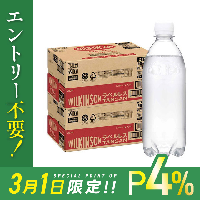 P4% 1日限定 アサヒ ウィルキンソン タンサン ラベルレス 500ml×2ケース/48本 炭酸水
