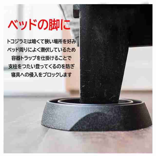 予防策のひとつとして、トコジラミが床や絨毯からベッドに這い上がってくるのを防ぐため、容器型トラップを脚元に敷く方法があります。