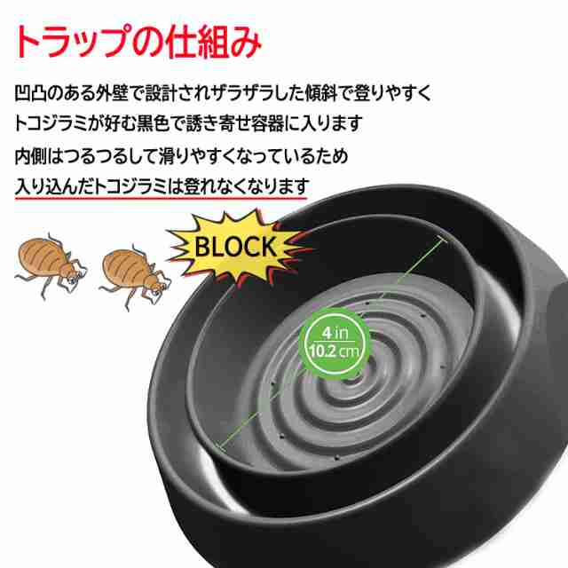 トラップは、凹凸のある外壁で設計されており、傾斜はザラザラしてトコジラミが登りやすくしてありますが、