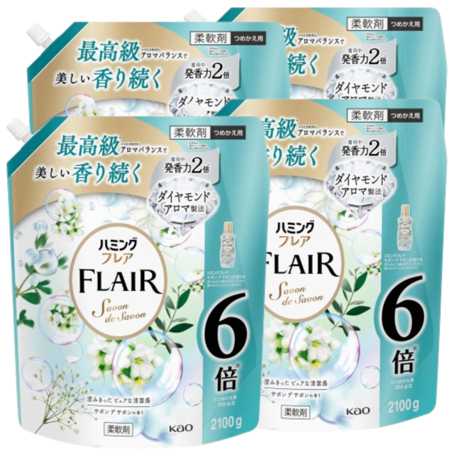 ハミングフレア フレアフレグランス 柔軟剤 50種のアロマ絶妙ブレンド。かぐたびに、惚れる香り サボン デ サボンの香り 約6倍 詰替え用 2100ml×4袋 ノンプンプン ダイヤモンドアロマ製法