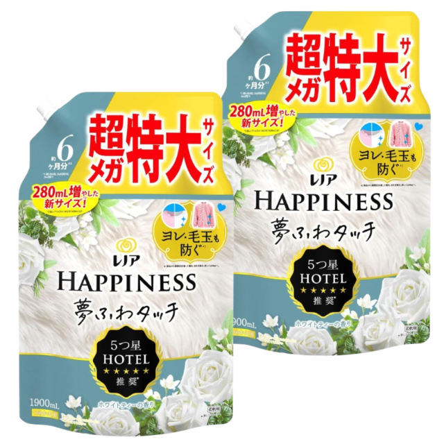 レノアハピネス 夢ふわタッチ 柔軟剤 ホワイトティー 1,900mL×2袋 約6ヶ月分 詰め替え 特大容量 大容量 超特大サイズ メガジャンボサイズ