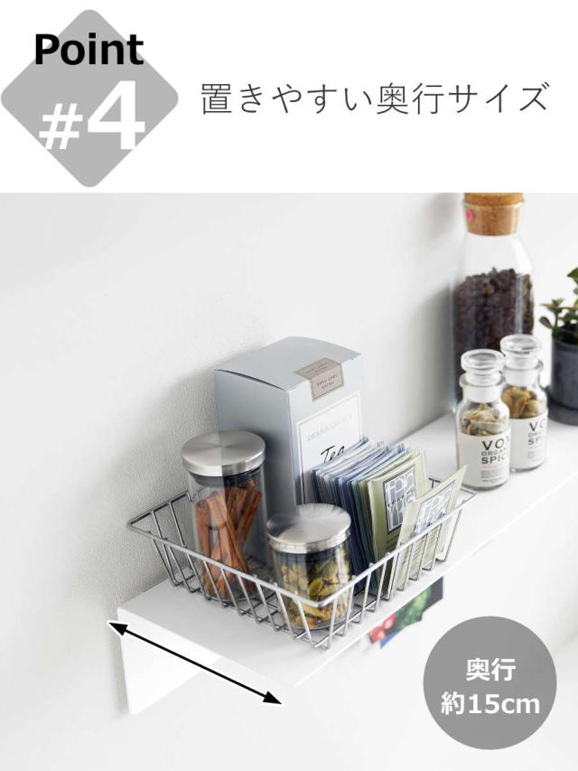 奥行が約15cmあるので小物入れやバスケットも置くことができます。収納スペースやディスプレイラックとしてもちょうどいいサイズ感です。