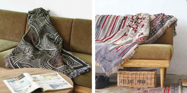 シンプルな空間にさりげなく置くだけで、お部屋をオシャレな雰囲気に彩るスローケットです。全5柄の中からお選びいただけますので、敷く柄によってお部屋の雰囲気をガラッと変えてくれます。