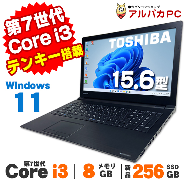 ノートパソコン 中古 【AIかんたんPC】Windows11 東芝 dynabook B55/J 15.6インチ 第7世代 Core i3 7100U メモリ8GB 新品SSD256GB DVDROM テンキー 無線LAN Windows11 Pro Office付き