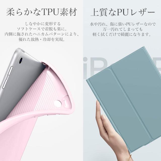 ■操作しやすいタッチパッド搭載 タッチパッド付きキーボードで、まるでMacbookのように操作することが可能になります。 ※iPadのOSバージョンがiOS13~14.6までないと、タッチパッドに対応していません。また一部の古いiPadはIOS13にアップデートすることができないので、 お使いのiPadがIOS13以降のバージョンにアップデートできていることを確認してからお買い求めください。 ■バックカバーは柔らかなTPU素材ケース 手触りも良くしなやかに変形するソフトケース。外部からの衝撃吸収に優れているのはもちろん、iPadのケースへの取り付け、取り外しも容易にできます。また良質TPUなので、異臭や経年による色変化が少ないのも魅力です。 独自の冷却デザインで内側に施されたハニカムパターンにより、優れた放熱・冷却を実現。 ■フロントカバー表面は触り心地が良く、スクラッチや水滴な強い上質な合成皮革(PUレザー)、裏地は表面と色を合わせたiPad液晶にも優しいマイクロファイバー素材を使用。表・裏ともに材質や色・デザインにこだわったお作りでiPadをもっとお洒落に引き立てるのはもちろん保護性能も優れています。 ■裏地は滑り止め素材加工の無段階角度調整可能なスタンド機能付きカバー。動画鑑賞に適した角度やタイピングに適した角度にしてiPadを楽しむことができます。 ■カバーの開け閉めでスリーブ解除/スリーブONになる為、バッテリー節約にも役立ちます。 ■ロックボタンや音量ボタン・イヤホンはケースを閉じたままでも使用できますので、使い勝手も抜群です。 |