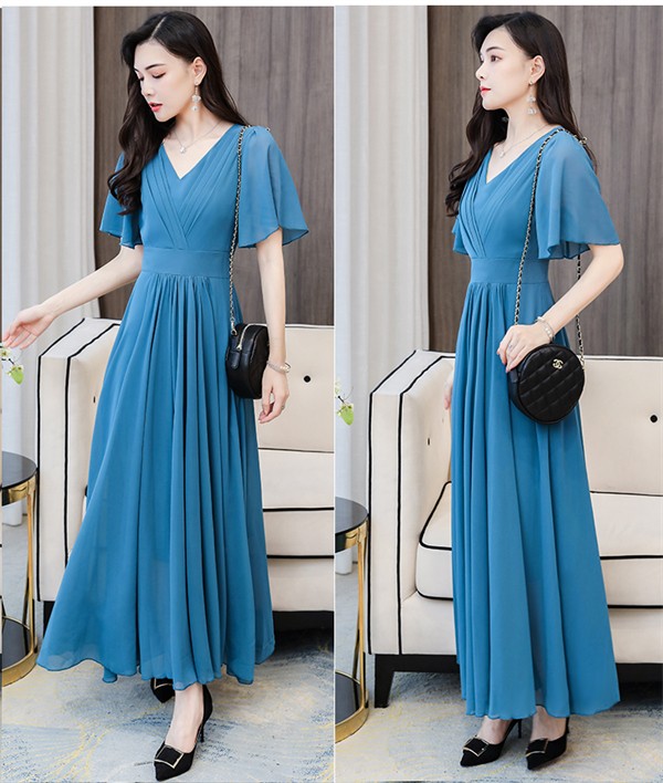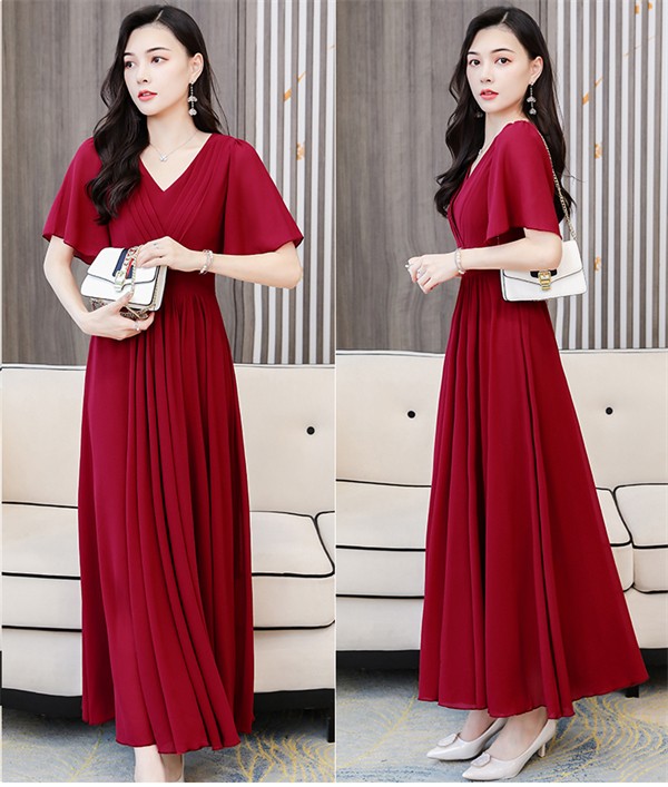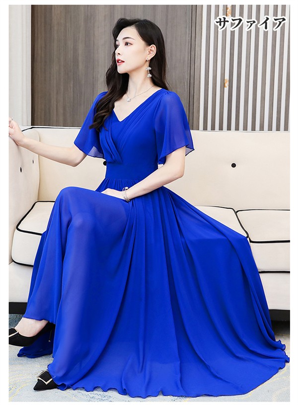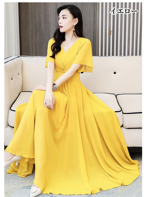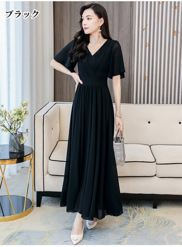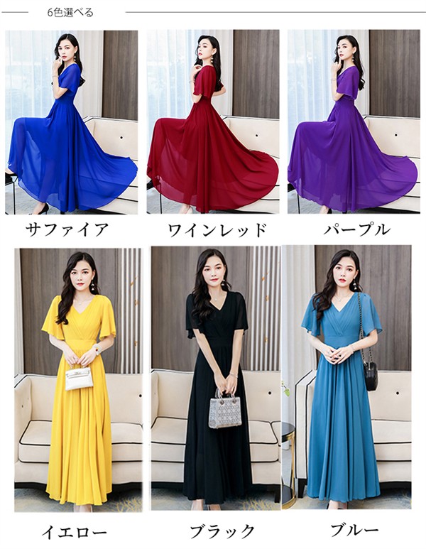 全6色 M-4L ワンピース レディース シフォン リゾートワンピース ロング 半袖 シフォン 透け Aライン ハワイ 沖縄 旅行用 大人 20代 30代 40代 可愛い 無地 シンプル お洒落 ふんわり フェミニン 薄手 Vネック 体型カバー シースルー かわいい おしゃれ 大きいサイズ 黒 赤