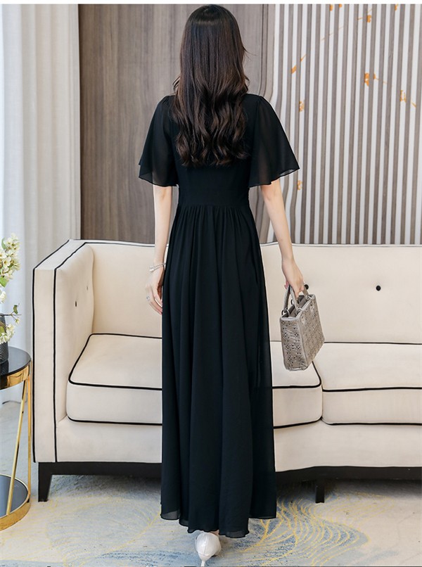 【商品名】全6色 M-4L ワンピース レディース シフォン リゾートワンピース ロング 半袖 シフォン 透け Aライン ハワイ 沖縄 旅行用 大人 20代 30代 40代 可愛い 無地 シンプル お洒落 ふんわり フェミニン 薄手 Vネック 体型カバー シースルー かわいい おしゃれ 大きいサイズ 黒 赤