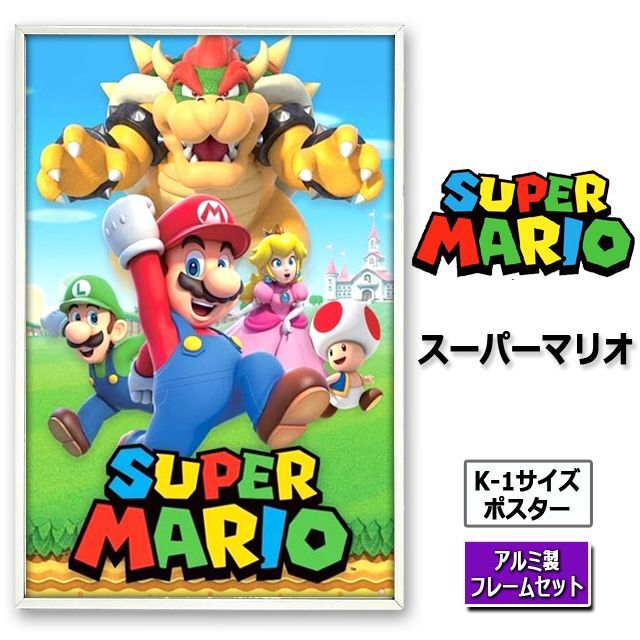 スーパーマリオ K-1サイズポスター(アルミ製フレームセット) (壁 部屋 アートインテリア ゴージャス アルミ製フレーム ハイクオリティー)