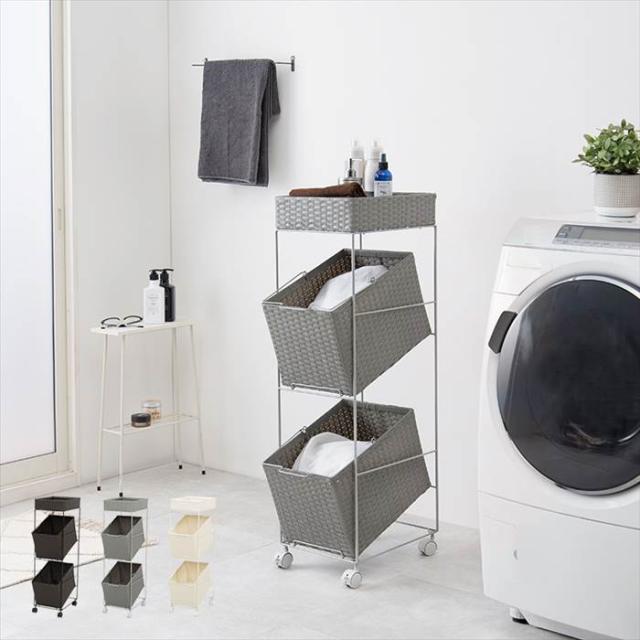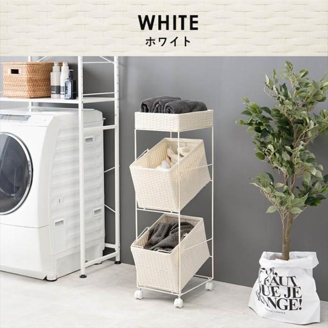 ランドリーラック 通販 RAN-2425 ランドリー収納 ランドリー ラック ランドリーバスケット カゴ 2個 脱衣かご 2段 キャスター付き 水回り 収納 洗面所 脱衣所 収納ラック 幅28×奥行42×高さ103cm 洗濯用品 日用品雑貨 家具 インテリア