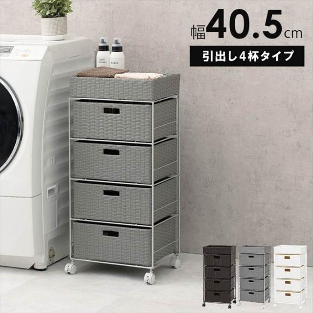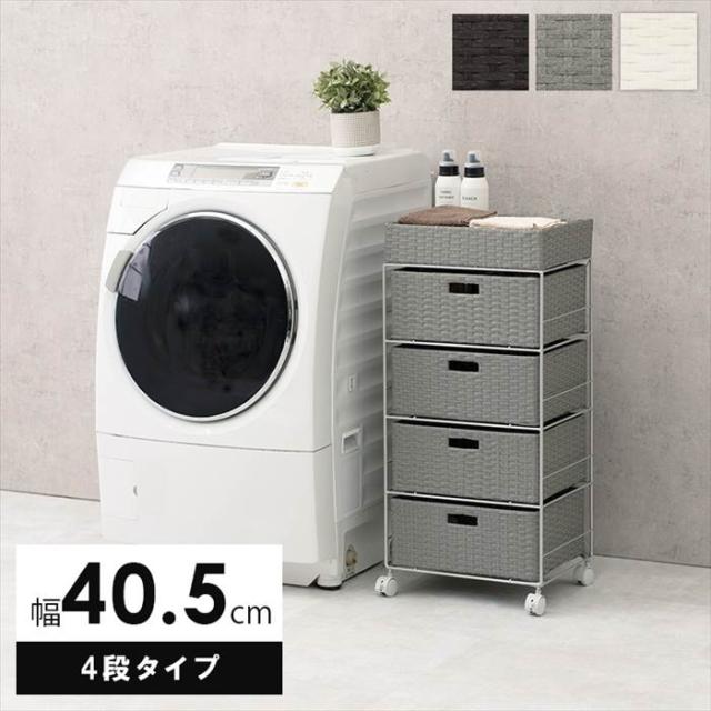 ランドリーラック 通販 RAN-2411 ランドリー収納 ランドリー ラック 引き出し 1列 4段 キャスター付き 水回り 収納 防水素材 大容量 洗面所 脱衣所 収納ラック 幅40.5×奥行30.5×高さ85cm 洗濯用品 日用品雑貨 家具 インテリア