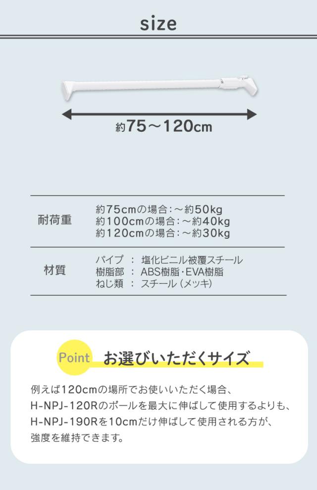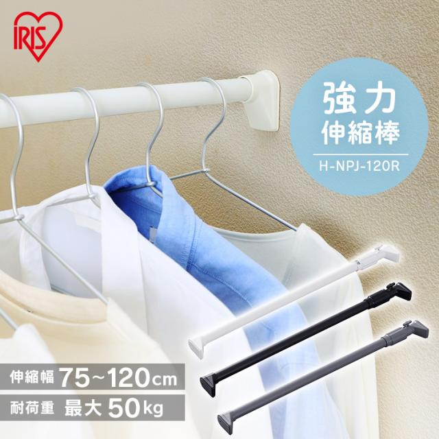 突っ張り棒 強力 物干し 突っ張り 収納 洗濯物干し ハンガーラック ポールハンガー クローゼット 衣類収納 75〜120cm 取付簡単 工具不要 強力伸縮棒 ホワイト ブラック グレー アイリスオーヤマ H-NPJ-120R