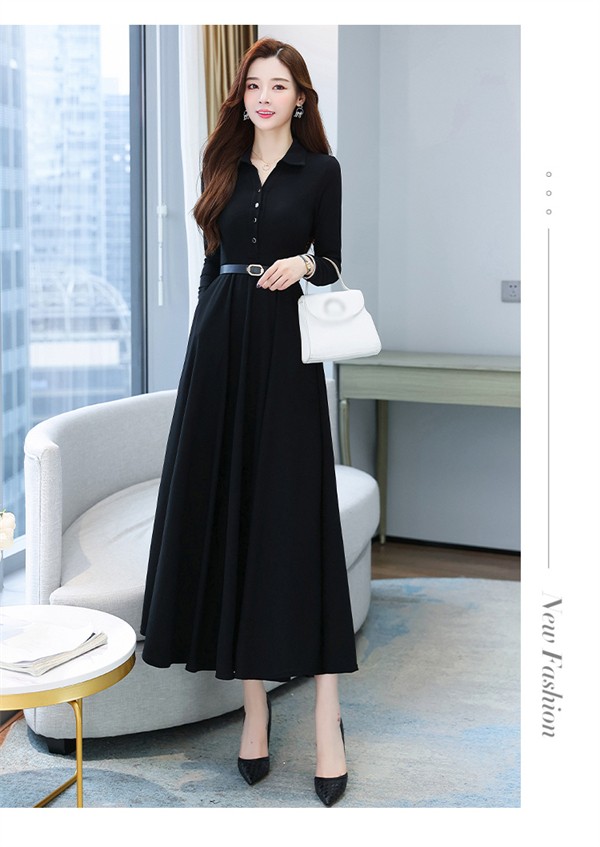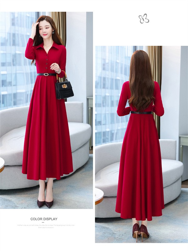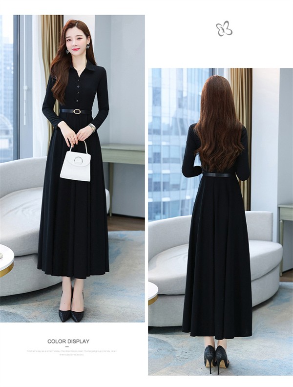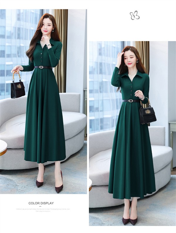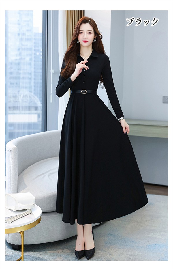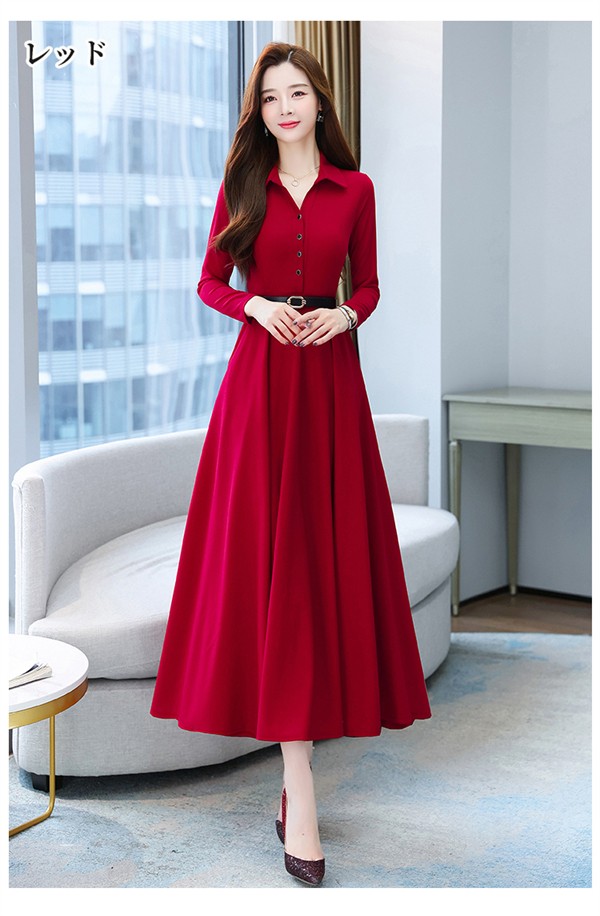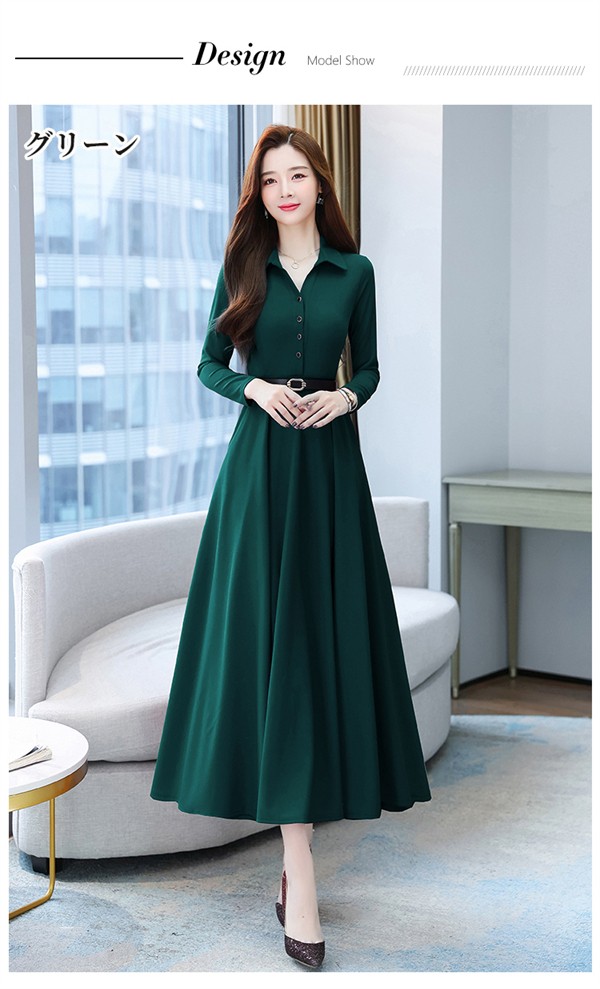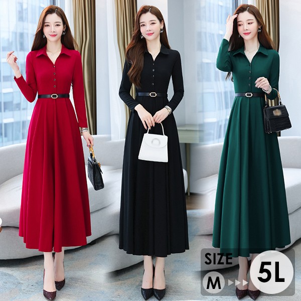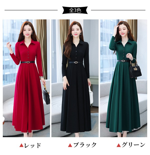 ワンピース ポロワンピース レディース きれいめ 40代 春 秋 ロング 黒ワンピース カジュアル 30代 長袖 50代 無地 大きいサイズ 結婚式 二次会 着痩せ 細身 大人 上品 フォーマル aライン OL オフェス 通勤 ママ お出かけ グリーン レッド ブラック M L XL 3L 4L 5L