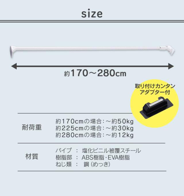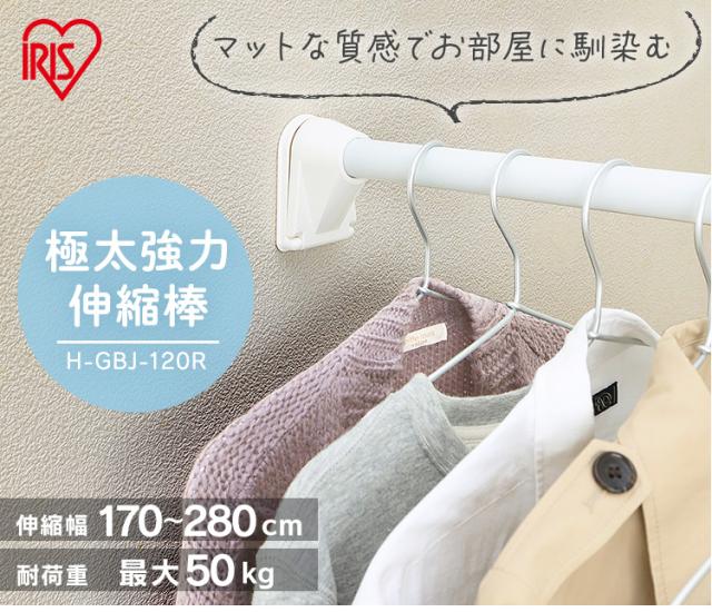 突っ張り棒 極太 強力 物干し 突っ張り 収納 洗濯物干し ハンガーラック ポールハンガー クローゼット 衣類収納 170〜280cm 取付簡単 工具不要 極太強力伸縮棒 ホワイト アイリスオーヤマ H-GBJ-280R