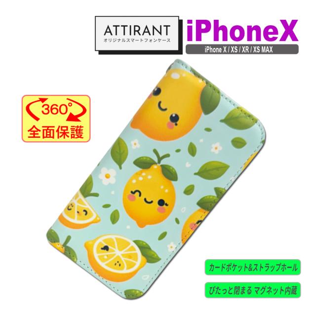 iPhone X ケース 手帳型 カバー X XS XR XSMAX レモン 檸檬 かわいい アイフォンケース