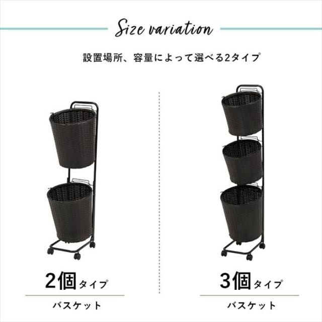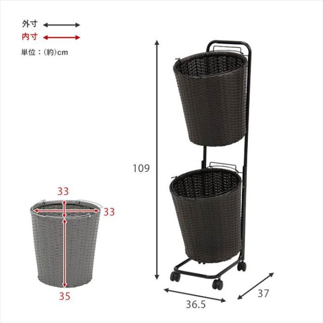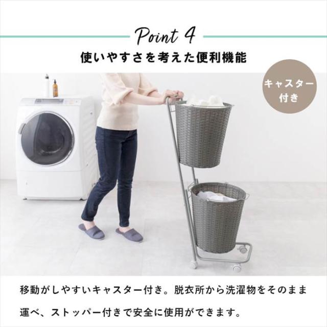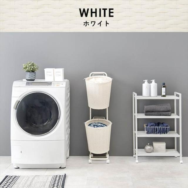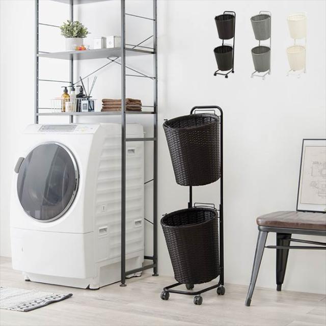 ランドリーラック 通販 RAN-2431 ランドリー収納 ランドリー ラック ランドリーバスケット カゴ 2個 脱衣かご 2段 キャスター付き 水回り 収納 洗面所 脱衣所 収納ラック 幅35×奥行39×高さ110cm 洗濯用品 日用品雑貨 家具 インテリア