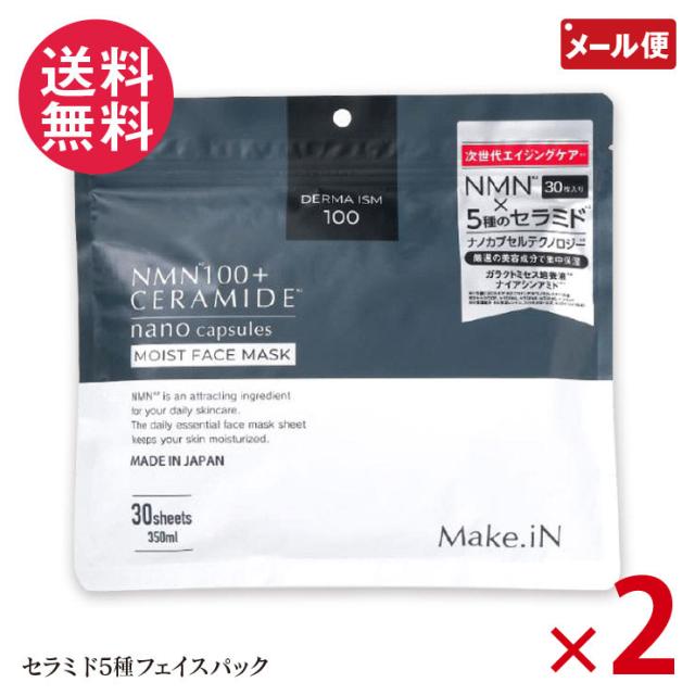 【メール便送料無料】 5種類のセラミド 配合 NMN100 セラミド フェイスマスク シート モイスト 保湿 デイリーケア 美容液パック 日本製 美容液350ml メイクイン