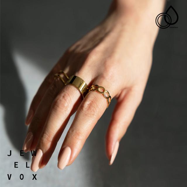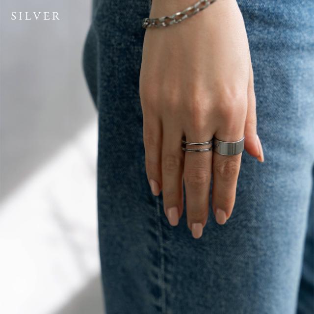 | 水にも強く、金属アレルギーの方でも比較的安心して使えるお肌に優しいサージカルステンレス製のリングです。 シンプルな幅広リング、チェーン風のオープンリング、2連風リングの3点セット。 それぞれどんな重ね方をするかレイヤード次第で違った表情が楽しめ、トレンド感のある手元を演出してくれます。 | |