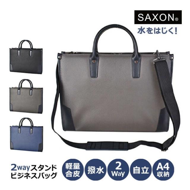 ビジネスバッグ メンズ 大容量 軽量 5236 合皮 2way 通勤 30代 20代 A4 自立 出張 1泊 ブランド 合成皮革 リクルートバッグ レディース 就活 バッグ ビジネス ショルダー SAXON サクソン 手提げ 斜め掛け 肩掛け B5 面接 通勤用 50代