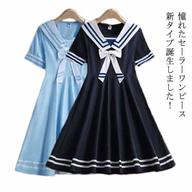 人気急上昇 売上急増中 子供服 家中時間充実化 店長太鼓判 今だけ 半袖 ロングワンピース 女 セーラー襟 ミモレ丈ワンピース ワンピース リボン付き セーラーワンピース ライン入り 制服 セーラー 送料無料
