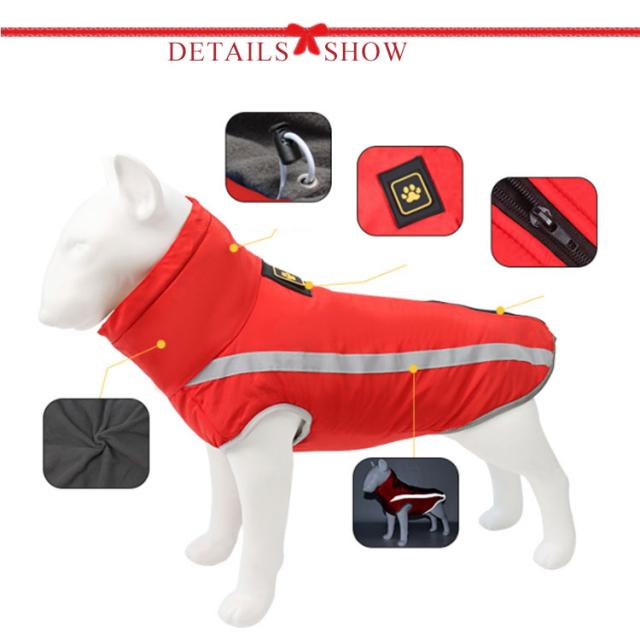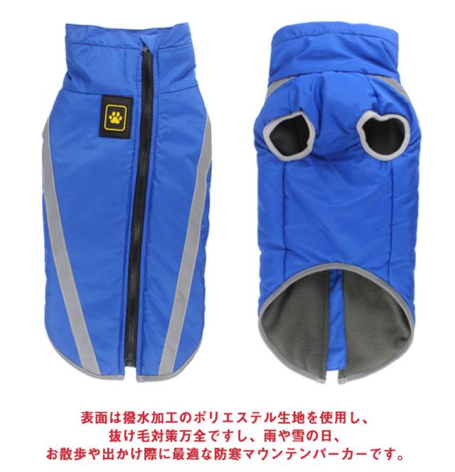 | 【中型犬、大型犬向け】防寒・撥水機能に優れたノースリーブ中綿ジャケット。XL-6XL!サイズあり。 表面は撥水加工のポリエステル生地を使用し、抜け毛対策万全ですし、雨や雪の日、お散歩や出かけ際に最適な防寒マウンテンパーカーです。 防風防寒性に優れた中綿入りなので、暖かくて防寒対策も万全。寒くて冷える時期のお出掛けに最適!お散歩やお出掛けが楽しくなること間違いなし♪ ハイネックで暖かさを増したうえ、スタイリッシュなワンちゃんにも変身。ドローコード付きなので、首まで暖かくて防寒性抜群。 犬服はハーネスが一体となったデザインなので、背中にDカンがあり、簡単にリードを取り付けてすぐにお散歩に出かけられます。首輪が使えない犬におすすめです。 バックジッパー式、着替える安くて脱着が簡単なデザインです。 袖無しタイプのダウンジャケットはちゃんと暖かくて動きやすい! 中綿素材は水濡れに強く、お洗濯しやすいため汚れても丸洗い可能です。 寒がりな愛犬ちゃんの冬のアウターにぴったりです。 | |