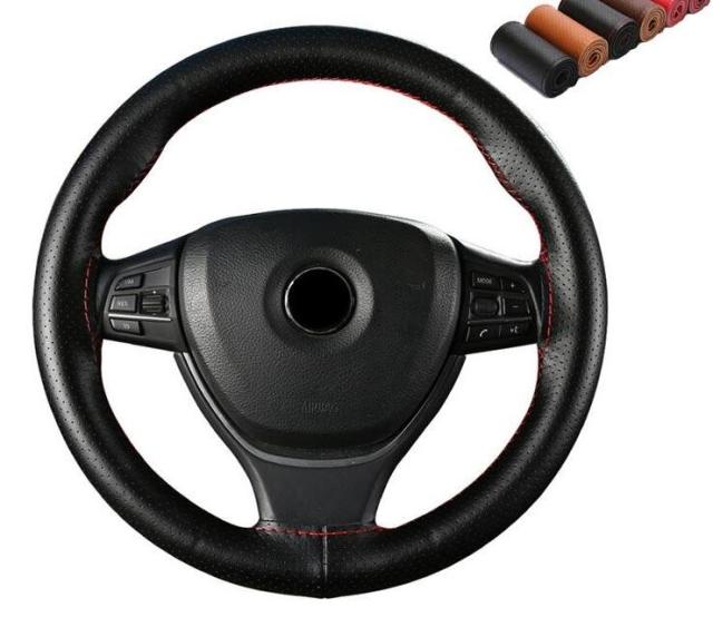 ハンドルカバー ステアリングカバー 手縫い 編み込み 牛革 自動車用 軽自動車 編み上げタイプ ハンドル カバー 通気 滑り止め 汚れ防止