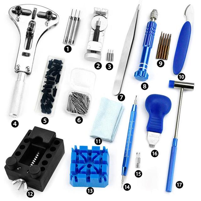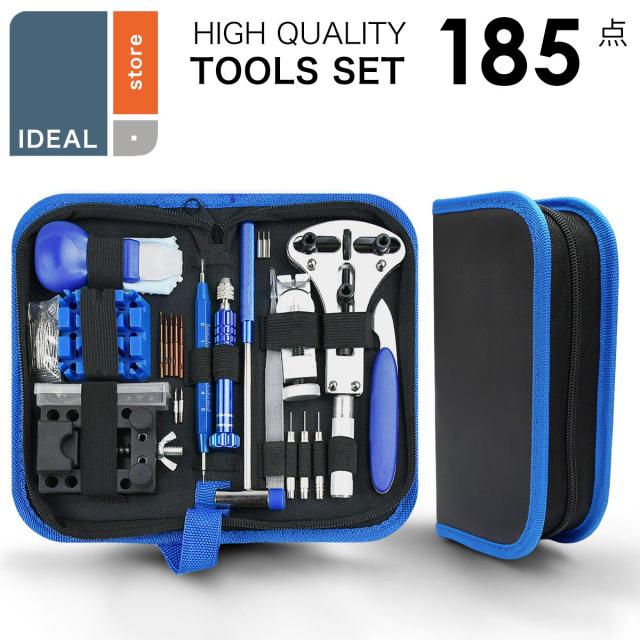 このセットには、電池交換からベルト調整、バンド交換まで、時計修理のあらゆる面をカバーするための17種類、合計185点の専門工具がセットになっています。 プロの時計職人から初心者まで、どなたでもこのセットを使って、時計店や修理店に行くことなく、自宅で簡単に時計のメンテナンスやカスタマイズを行うことができます。 各ツールは、耐久性があり高品質な材料で作られており工具としての高い精度があります。 このセットには、時計の裏蓋を開けるためのさまざまな種類のケースオープナー、微細な調整を可能にするピンセット、バンドのサイズ調整を行うためのリンクピンリムーバーなど、 あらゆる修理作業に必要なツールが含まれています。また、それぞれのツールは使いやすく設計されているのも特徴です。 時計コレクションを自分で管理し、お気に入りの時計をいつでも最高の状態に保つために、この工具セットがあればもうプロに頼る必要はありません。