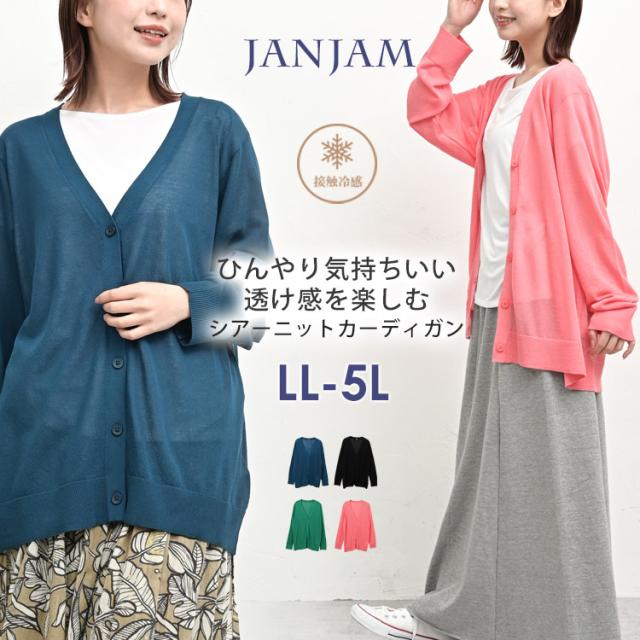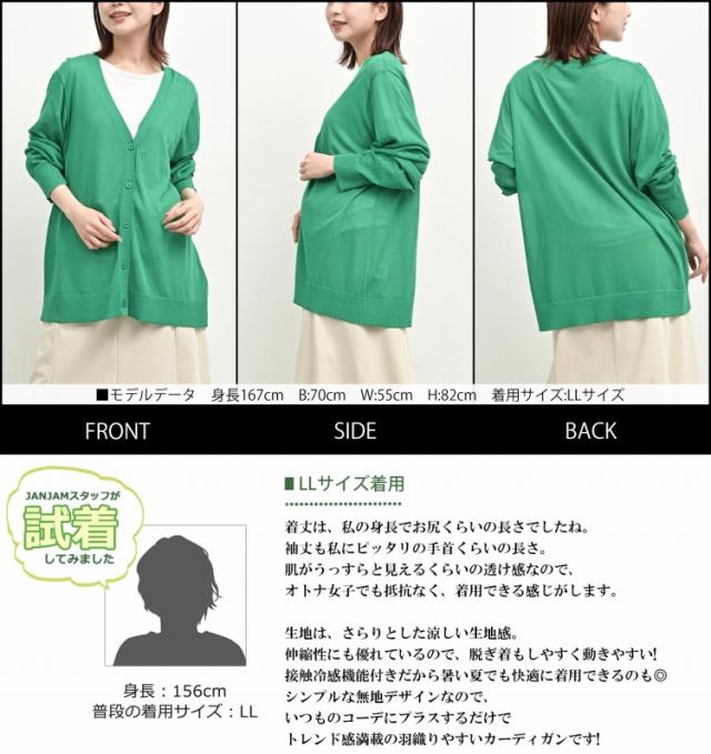 大きいサイズ レディース シアーニットカーディガン 長袖 メール便送料無料 Vネック 接触冷感 羽織り トップス LL/3L/4L/5L ゆったりサイズ ぽっちゃり女子 プラスサイズ